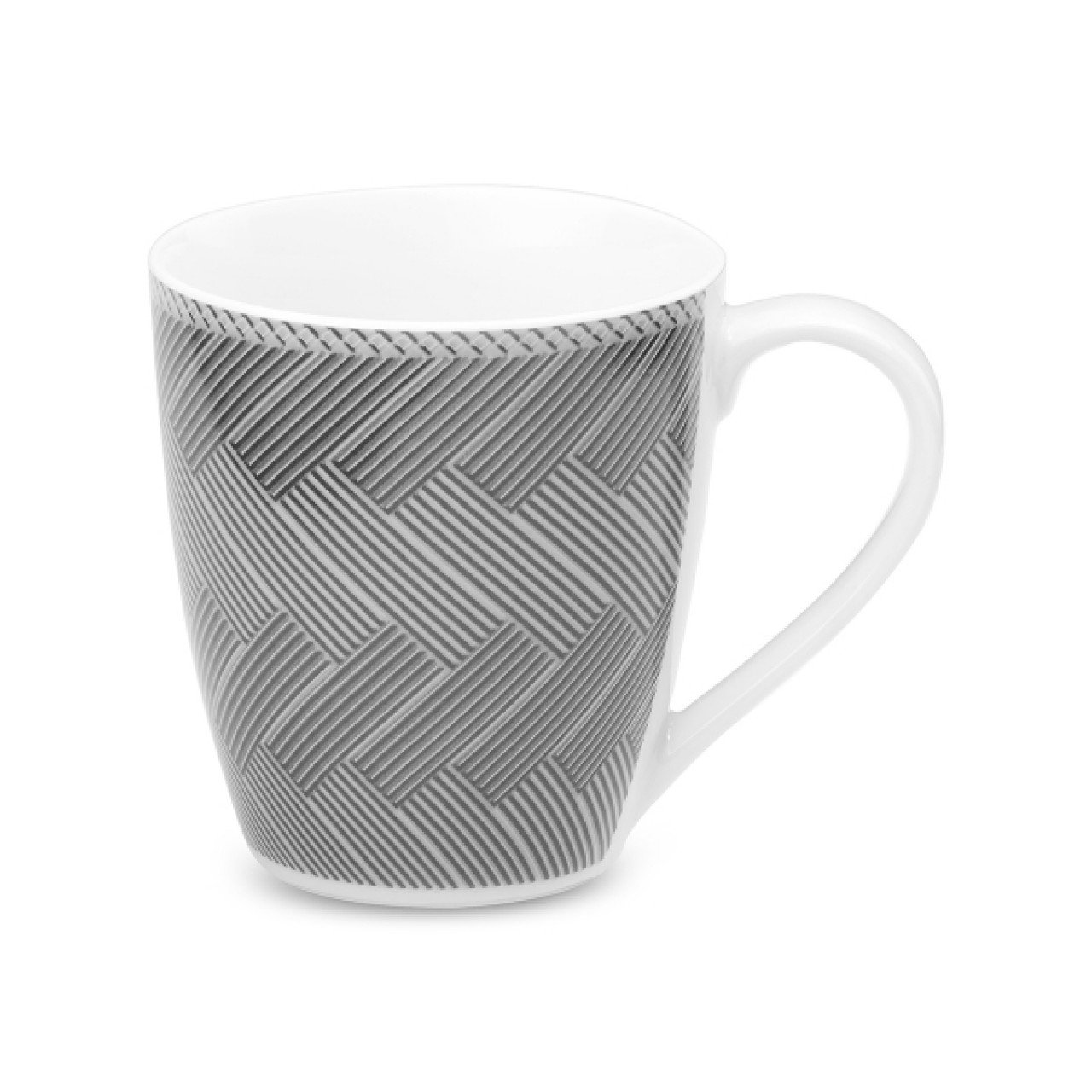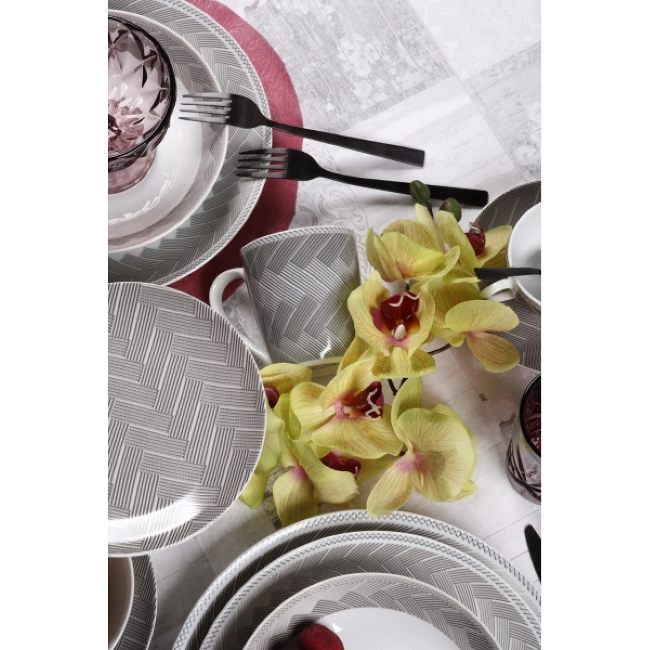Σετ 20τεμαχίων από λευκή πορσελάνη με γκρι ανάγλυφα σχέδια ψαροκόκαλου.